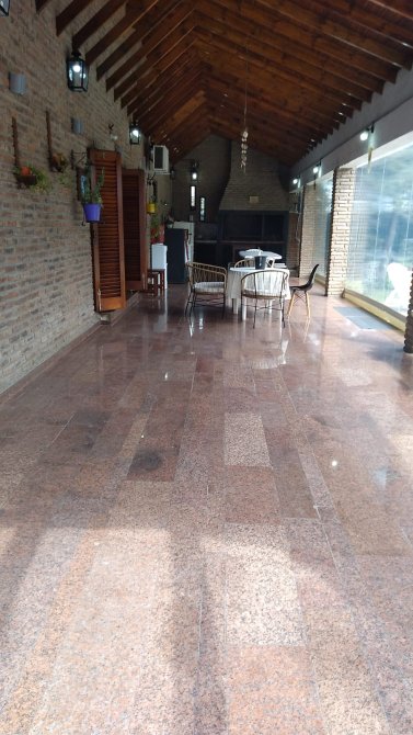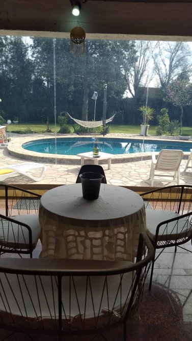AMPLIA GALERIA DE 18 METROS CUBIERTA donde podra disfrutar de su estadia con la vista al parque y pileta
